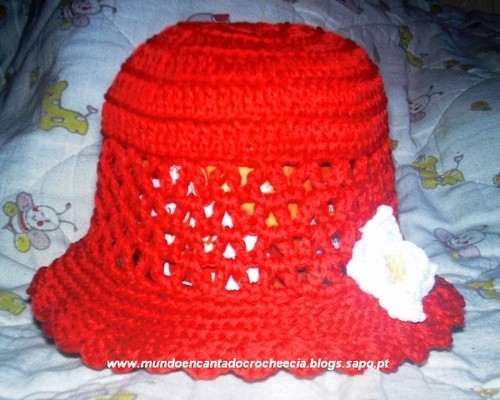 Um belo chapéu para as bebezinhas ficarem ainda mais fofas e protegidas do sol tendo sido confeccionado em linha fio duplo.