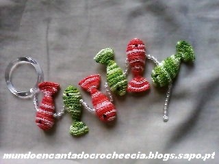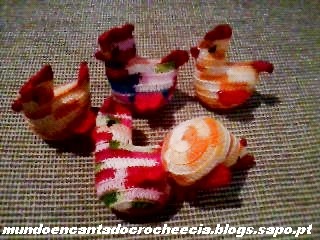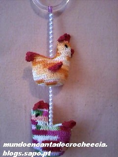 As galinhas foram confeccionas em linha fina matizada laranja e com emendas de fios coloridos para dar o efeito "country", agradecemos à Adriana do Blog Croche Croche por disponibilizar o gráfico que pode ser visto Aqui. Além de móbile podem ser usadas como porta-chaves ou sachês, convidem às crianças para ajudar na montagem colocando contas, pingentes e tudo mais que a imaginação permitir.
