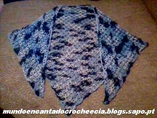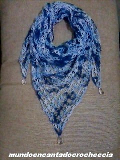 Abaixo temos um Lenço em Ponto Segredo matizado em azul que seguirá viagem junto com o Pika-Pika para em breve adornar uma amiga muito especial e querida, a Sofia, que nos encanta em seu Blog Cantinho das Decorações com os trabalhos lindos que faz, quem ainda não a conhece sugerimos que lhe visitem, vão adorar de certeza.