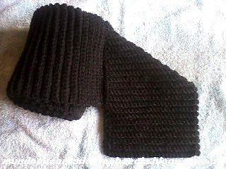 Este cachecol foi confeccionado em lã grossa com agulha 5.0 mm, muito simples e prazeroso de ser feito, inicia-se com 25 correntes e primeira carreira de pontos baixos, depois é só seguir até o comprimento desejado com as carreiras de pontos baixos pegos pela alça detrás para dar o efeito sanfonado, apenas isso. Reparem que nas laterais o acabamento já fica formado, este ponto também é utilizado para barras de blusas ou punhos como na luva que postamos em 29/01/2012, esta...