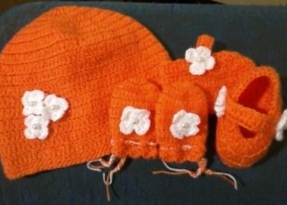 Let's learn how to make this set of hat, bootie and gloves for baby in crochet to donate? see the pattern soo...